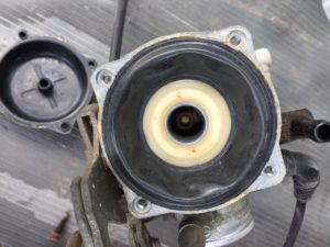 このダイヤフラムが劣化して破れていたり硬くなっていたらキャブが機能しなくなるので確認しておきます。