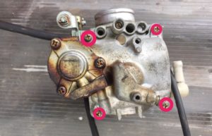 ここまでの作業での難点は、キャブレターとマニホールドを繋いでいる部分のネジを緩めるところです。