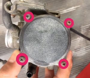 で、ネジが緩んだら、キャブレターを持ってグイグイっとやるとはずれます。