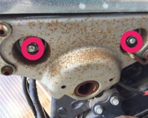 トリプルツリーの下側を見てみると2つのナットが見えますよ。