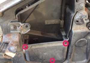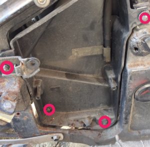 サイドカバーがとれたら、ボックスを開けて○ボルトをはずします。