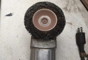 スポークのサビ取りは、真鍮製のワイヤーブラシをつけたディスクグラインダーを使いました。