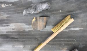 まずは真鍮ブラシで大まかなサビや汚れを落とし、そのあとスチールウールで全体をこすります。